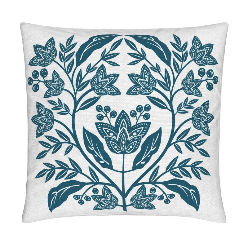 Motifs in this design come from my linoleum block printing and then made into this lovely pattern in teal blue.