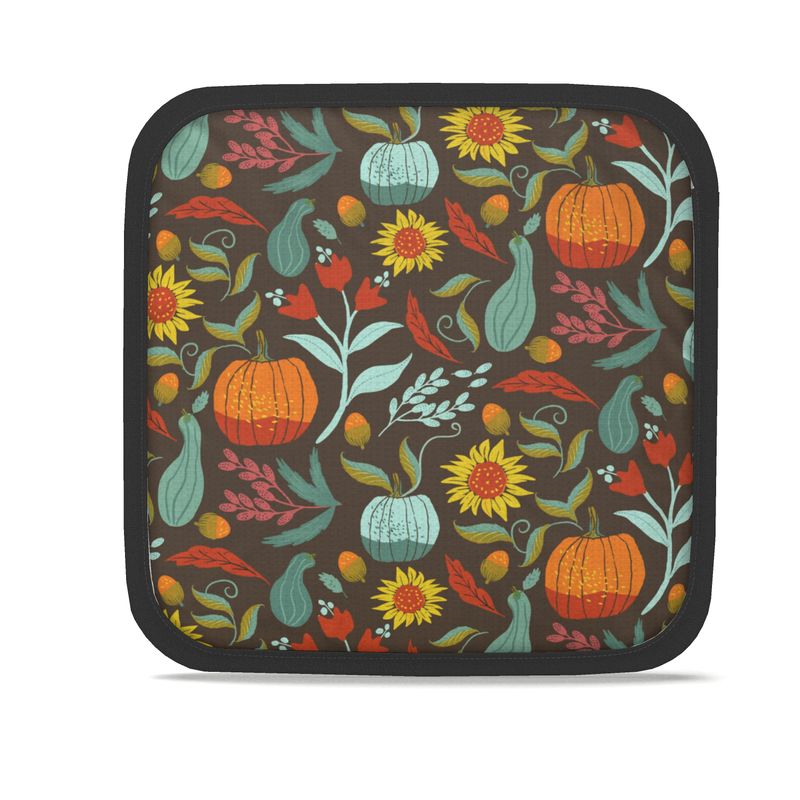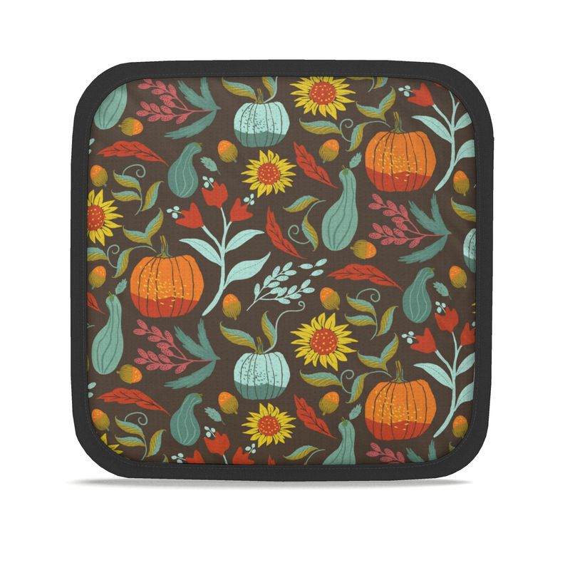 Bring the coziness of fall into your home with these harvest themed hot dish pads. Hand drawn elements add warmth to this design.
