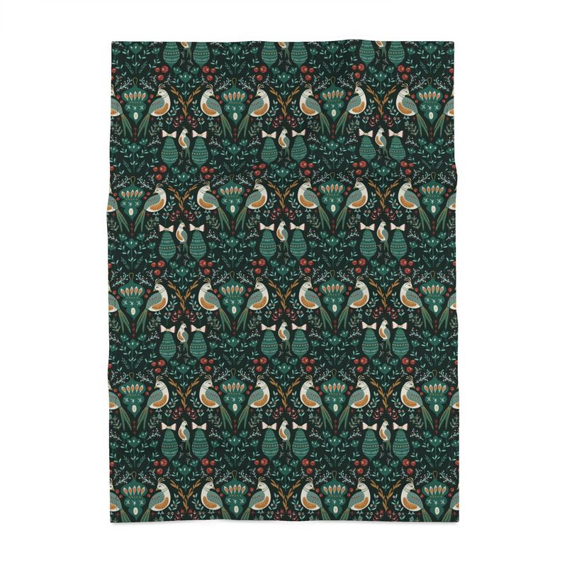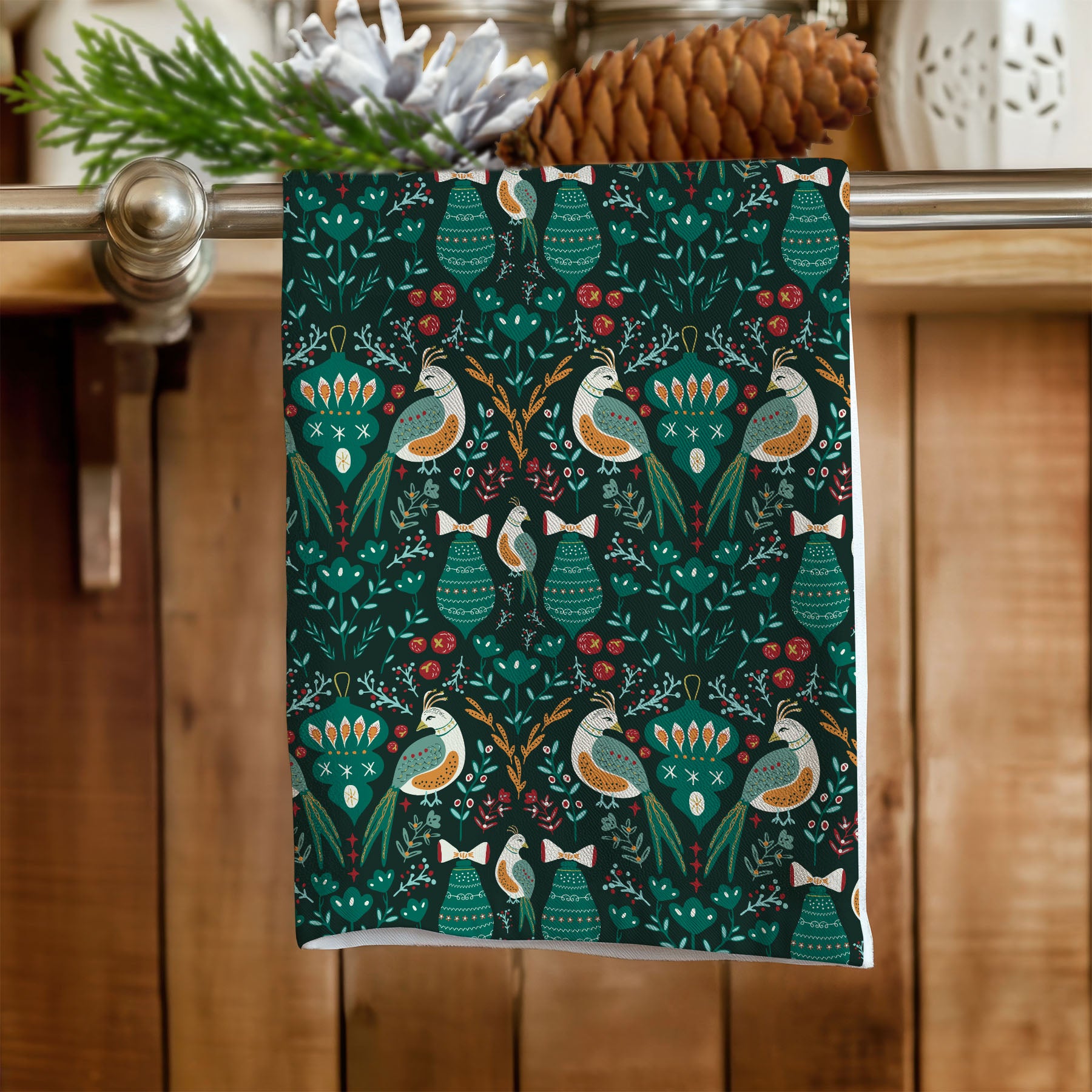 Hand drawn birds, flowers and ornaments in a bold holiday color palette.