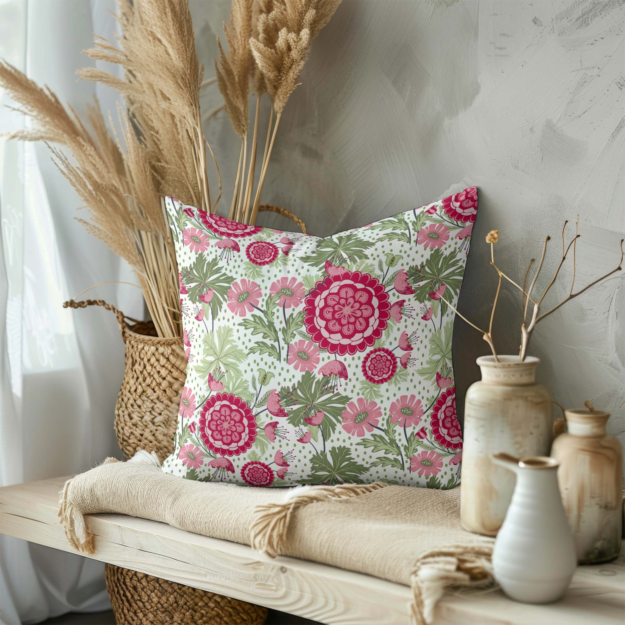 Bohemian Blossoms Cotton Linen Pillow Cover