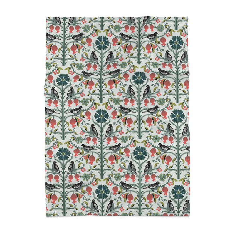 Hand drawn doves, flowers and leaves in a bold color palette of greens and reds. Nice for the holidays or year round!